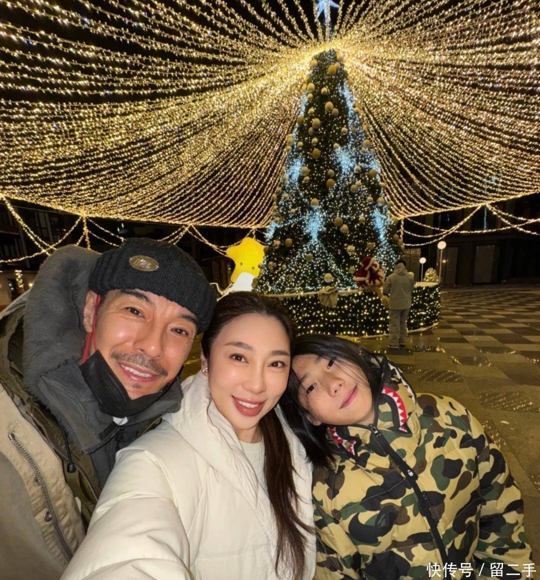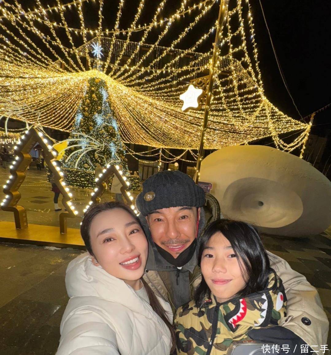 在另一张三人合照里,海一天抱着母子俩,脸颊泛红,好像不是因为冷,而是喝多了感觉挺开心的。细看之下,海一天和继子关系挺亲密,不少人还以为他们是亲生父子呢。